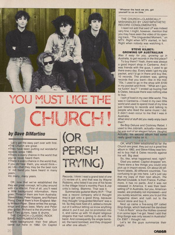 Let’s get the easy part over with first. •The Church are great. •They have been putting out wonderful records since 1980. •There is every chance in the world that you’ve never heard them. •There is every chance in the world that, if you did hear them, you would think— as I do—that they may be the best rock ’n’ roll band you have heard in many years.