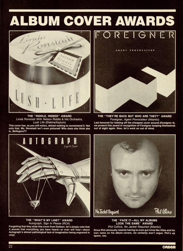 Well, it looks like it's time—once again—to hand out our coveted ROCK-SHOTS album cover awards. As usual, we attempt to honor outstanding examples of conceptualism, visual metaphor and blundering thought-processes. And, as usual, we end up choosing our winners “just because.”