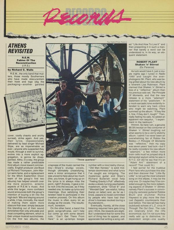 Now a full five years removed from Led Zeppelin’s breakup following drummer John Bonham’s untimely death in 1980, Robert Plant, in 1985, is a singer feeling his oats.