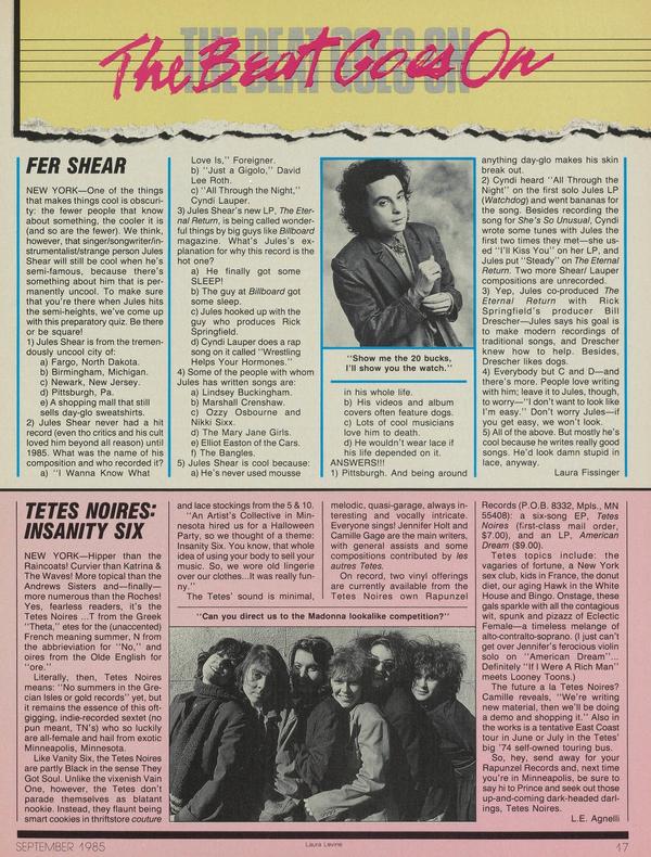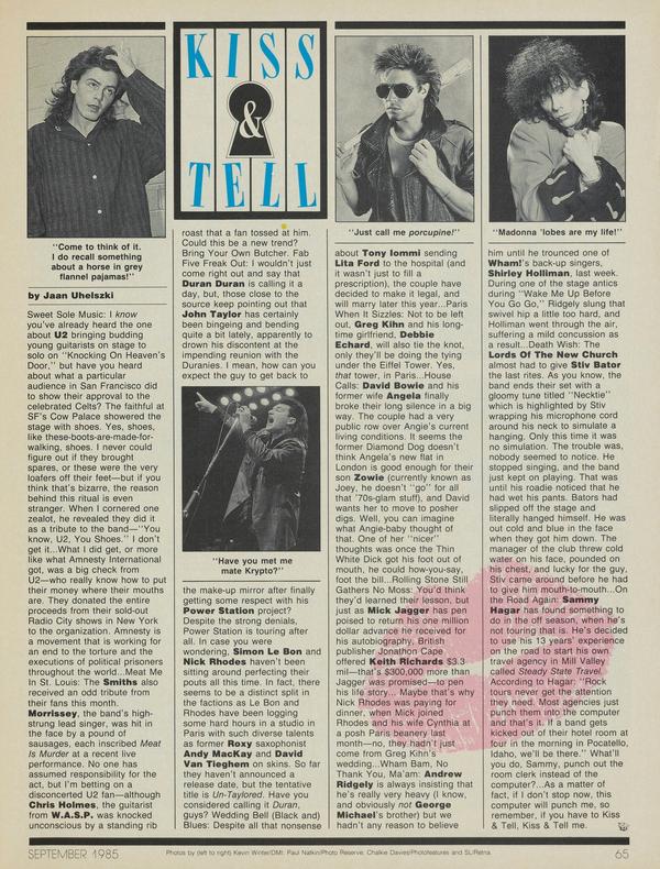 Scheduled for a fall release is Sting’s new film, which will have something to do with his new LP, The Dream Of The Blue Turtles. The movie will be filmed in Paris and document the development of ol’ Gordy’s new jazz band. A guest appearance by Flipper cannot be ruled out!