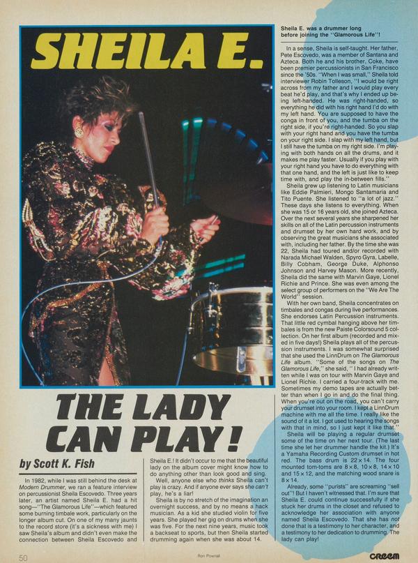 In 1982, while I was still behind the desk at Modem Drummer, we ran a feature interview on percussionist Sheila Escovedo.