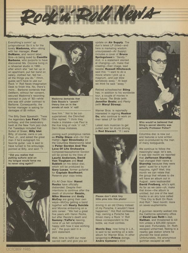 Everything’s comin’ up jurisprudence! So it is for the lovely Madonna, who—along with her manager, Fred DeMann, and record label, Sire—is being sued by Camille Barbone, who purports to have discovered Ms. Ciccone living in a rehearsal studio in 1980... after which she “set her up in an apartment, put her band on salary, clothed her, fed her... all the things you do.”