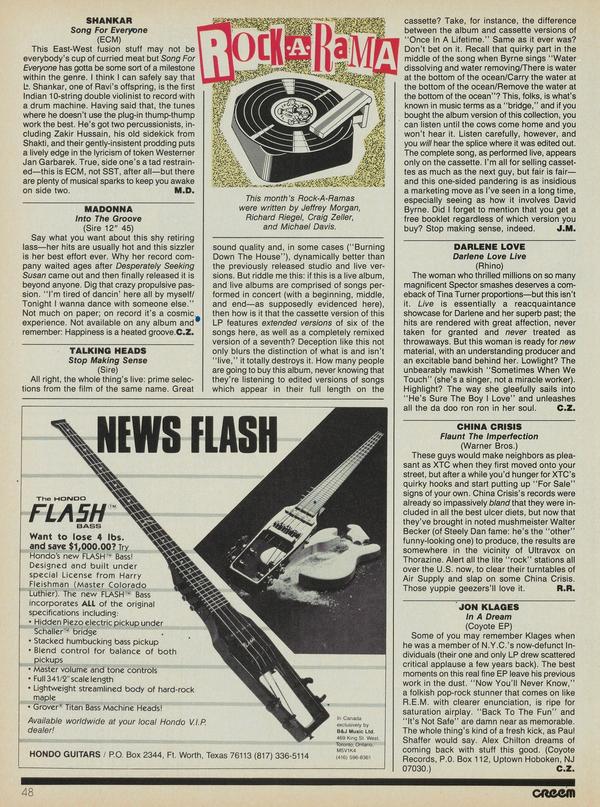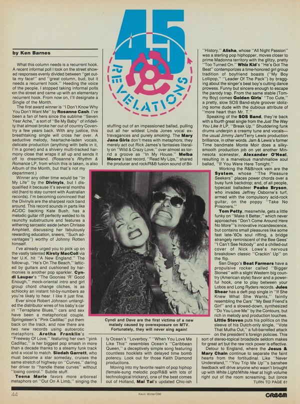 One of the real pleasures in chronicling the popular music business is in watching the heady excess of overnight stardom. For instance, in the Christmas of 1983 I spent a day with a pleasant young singer, driving down to New Jersey with her for a spot on the Uncle Floyd Show, discussing feminism, lesbianism, rebellion.