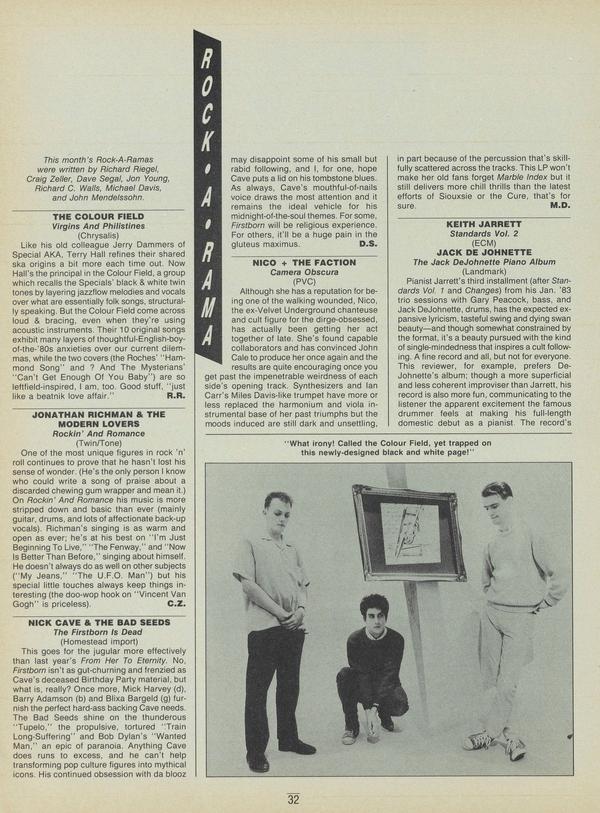 This month’s Rock-A-Ramas were written by Richard Riegel, Craig Zeller, Dave Segal, Jon Young, Richard C. Walls, Michael Davis, and John Mendelssohn.