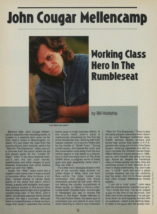 Belmont Mall, John Cougar Mellencamp's beautiful new recording studio, is located in a pastoral farm area not far from John’s home in Bloomington, Indiana. It’s just down the road from the country church John recently used in his “Rain On The Scarecrow” video, and on ly minutes from the porch where he sat and played guitar for his “Lonely Of Night” video if you drive towards town, you’ll see the old rural stores, steakhouses and other images of pure Midwest Americana that some believe went out with the 1950s.