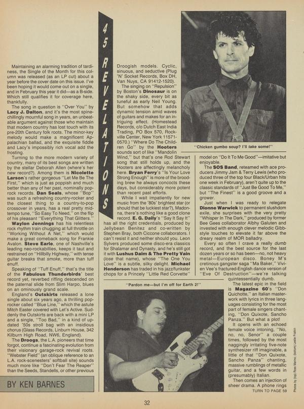 Maintaining an alarming tradition of tardiness, the Single of the Month for this column was released (as an LP cut) about a year before the cover date on this issue. I’ve been hoping it would come out on a single, and in February this year it did—as a B-side.