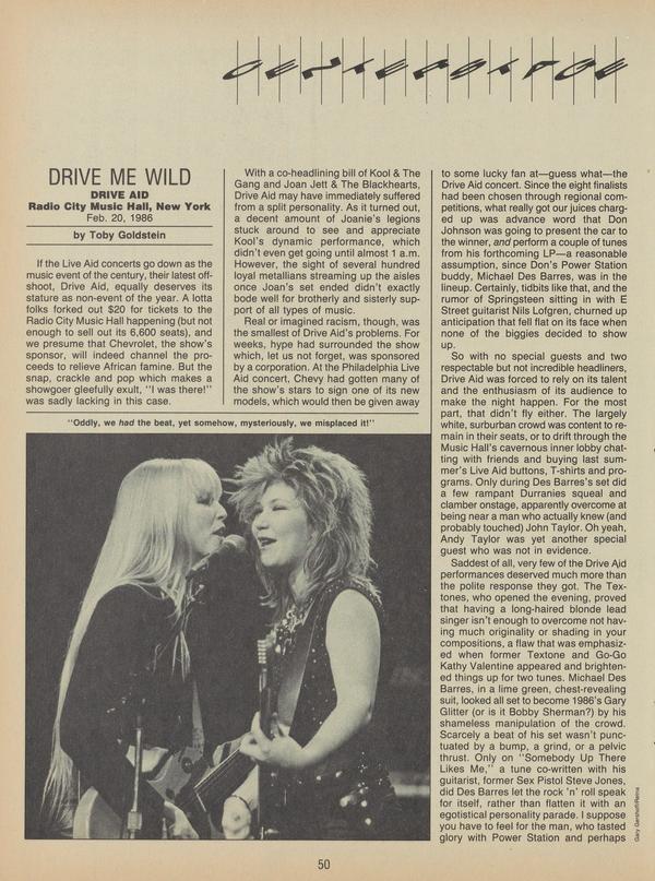 If the Live Aid concerts go down as the music event of the century, their latest offshoot, Drive Aid, equally deserves its stature as non-event of the year. A lotta folks forked out $20 for tickets to the Radio City Music Hall happening (but not enough to sell out its 6,600 seats), and we presume that Chevrolet, the show’s sponsor, will indeed channel the proceeds to relieve African famine.