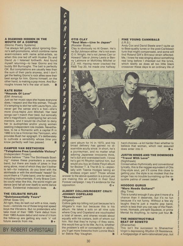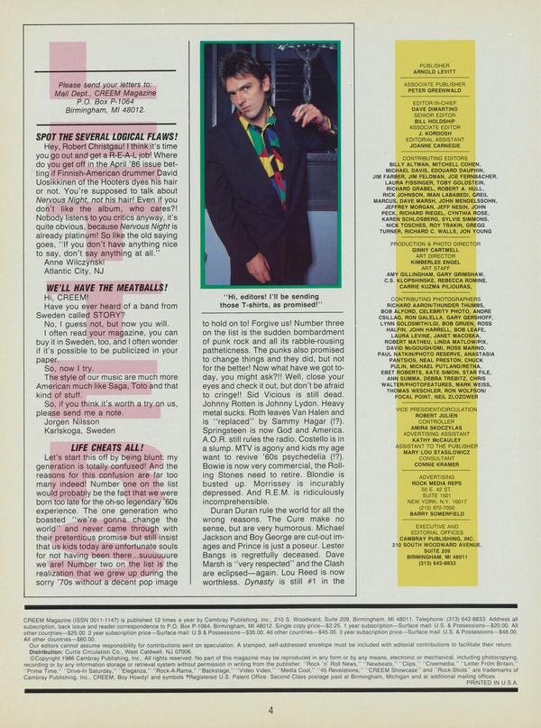 Hey, Robert Christgau! I think it‘s time you go out and get a R-E-A-L job! Where do you get off in the April'86 issue betting if Finnish-American drummer David Uosikkinen of the Hooters dyes his hair or not. You’re supposed to talk about Nervous ,Night, not his hair!