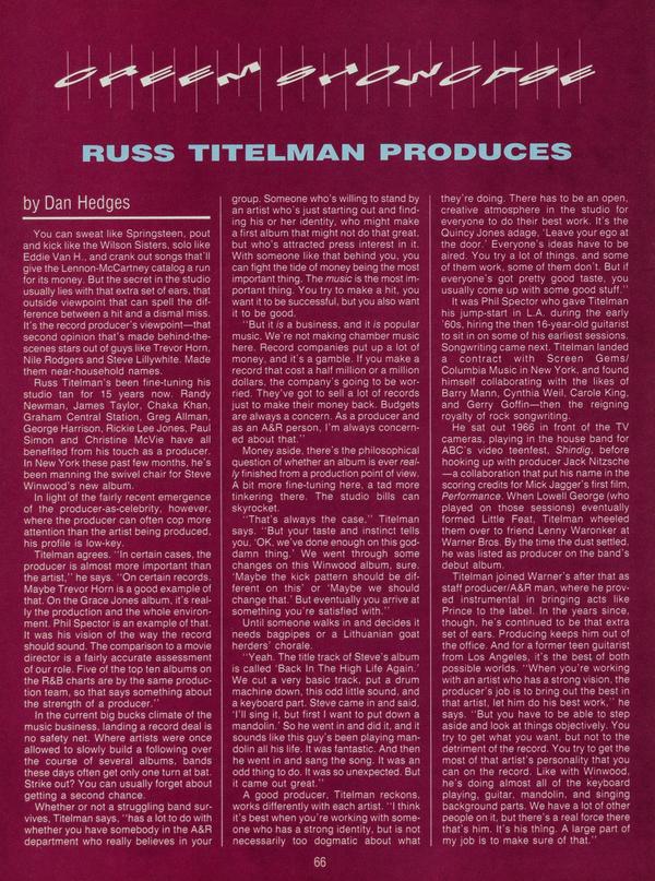 You can sweat like Springsteen, pout and kick like the Wilson Sisters, solo like Eddie Van H.. and crank out songs that’ll give the Lennon-McCartney catalog a run for its money. But the secret in the studio usually lies with that extra set of ears, that outside viewpoint that can spell the difference between a hit and a dismal miss.