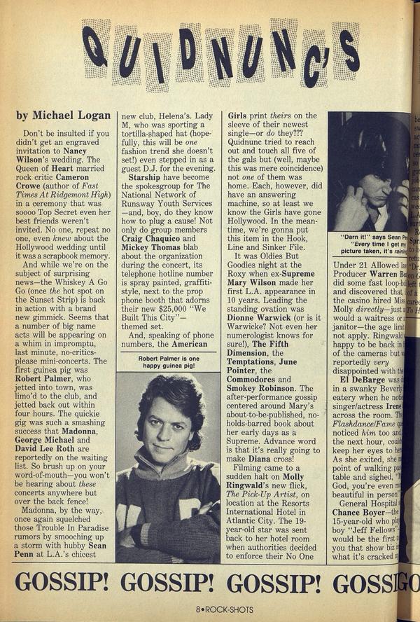 Don’t be insulted if you didn’t get an engraved invitation to Nancy Wilson’s wedding. The Queen of Heart married rock critic Cameron Crowe (author of Fast Times At Ridgemont High) in a ceremony that was soooo Top Secret even her best friends weren’t invited.