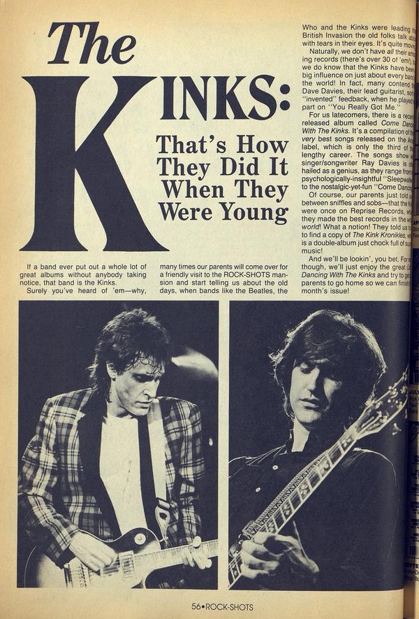 If a band ever put out a whole lot of great albums without anybody taking notice, that band is the Kinks. Surely you’ve heard of ’em—why, many times our parents will come over for a friendly visit to the ROCK-SHOTS mansion and start telling us about the old days, when bands like the Beatles, the Who and the Kinks were leading tha British Invasion the old folks talk about with tears in their eyes.