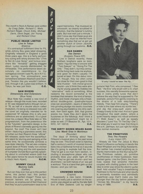 This month’s Rock-A-Ramas were written by Craig Zeller, Richard C. Walls, Richard Riegel, Chuck Eddy, Michael Davis, Dave Segal, Jon Young and Richard Chon.