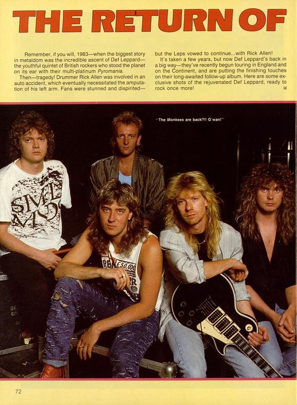Remember, if you will, 1983—when the biggest story in metaldom was the incredible ascent of Def Leppard— the youthful quintet of British rockers who stood the planet on its ear with their multi-platinum Pyromania. Then—tragedy! Drummer Rick Allen was involved in an auto accident, which eventually necessitated the amputation of his left arm.