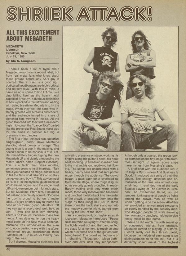 There’s been a lot of hype about Megadeth—not from a record label, but from real metal fans who know about these groups before any A&R guy is courted. That in itself is a good sign: dedicated headbangers are highly critical and fiercely loyal.