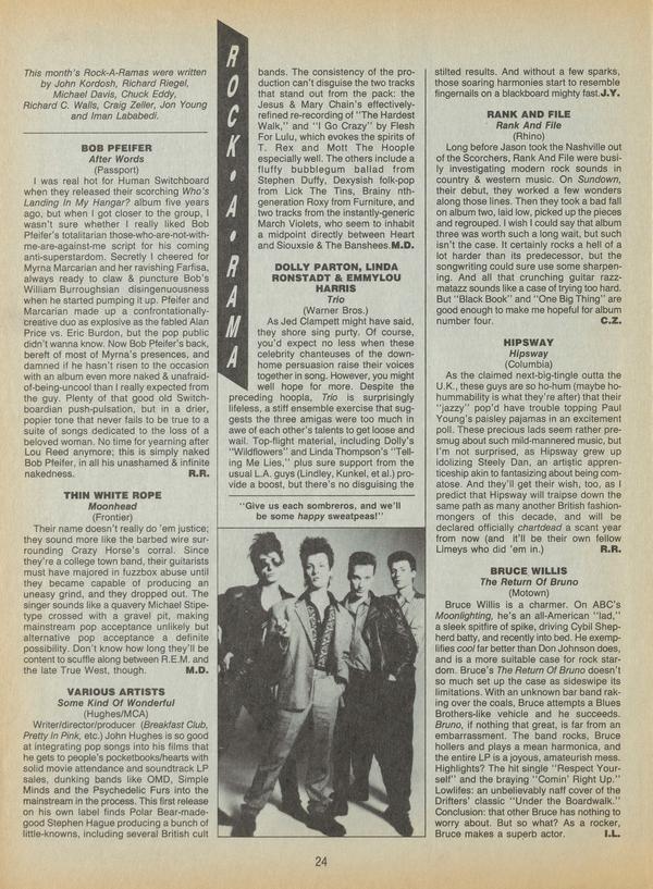 This month’s Rock-A-Ramas were written by John Kordosh, Richard Riegel, Michael Davis, Chuck Eddy, Richard C. Walls, Craig Zeller, Jon Young and Iman Lababedi.