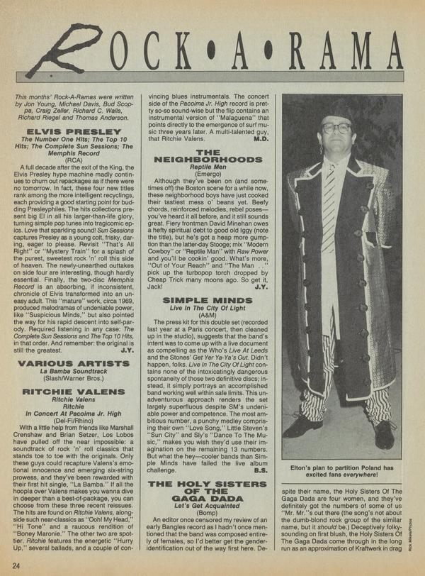 This months’ Rock-A-Ramas were written by Jon Young, Michael Davis, Bud Scoppa, Craig Zeller, Richard C. Walls, Richard Riegel and Thomas Anderson.