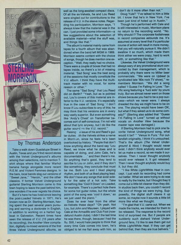 There are two sides to the Velvet Underground—only one of which is rock ’n’ roll in the romantic tradition of Bob Dylan and the Rolling Stones. If someone in a guitar pop band claims to be "into the Velvets,” and they show it by doing the three-chords-and-poetry thing, this is the Velvet Underground they are talking about.