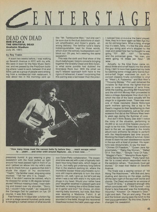 “That’s what’s depressing about all this ‘new music’; it’s kind of hype... some of that stuff isn’t any fuckin’ good...I mean, like Husker Du doin’ The Mary Tyler Moore Theme.’ Why don’t they play ‘No Reply,’ y’know? Maybe I’m just old, but I’d rather hear a real song.”