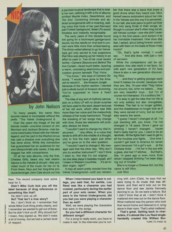 To many people, the name Nico sounds naked or incomplete without the prefix “The Velvet Underground &... Over the years the image of the tall blonde model—one-time consort of Jim Morrison and Jackson Browne—has become inextricably linked with the Velvets’ legend, and her part in the Warhol circus has cast a shadow over everything she has done since.