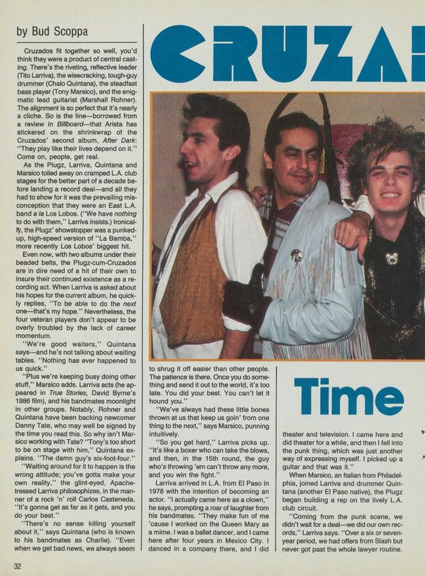 Cruzados fit together so well, you’d think they were a product of central casting. There’s the riveting, reflective leader (Tito Larriva), the wisecracking, tough-guy drummer (Chalo Quintana), the steadfast bass player (Tony Marsico), and the enigmatic lead guitarist (Marshall Rohner).