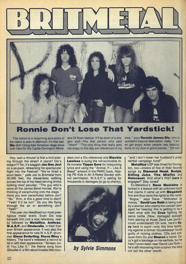 It’s the meanest part of midsummer. The air smells like a tramp pissed in a Turkish bath. It’s still in the 90s outside, and inside there’s 18,000 people layered like angel's food cake in an arena outside Washington, D.C. An exuberant bunch, good natured; they’re not even rude to the opening act, Keel.