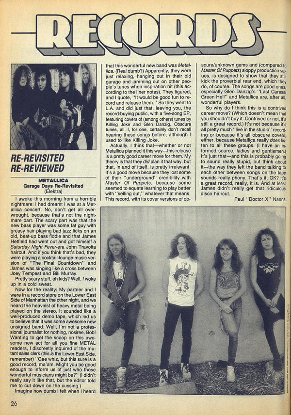 RE-REVISITED RE-REVIEWED METALLICA Garage Days Re-Revisited (Elektra) I awoke this morning from a horrible nightmare: I had dreamt I was at a Metallica concert.