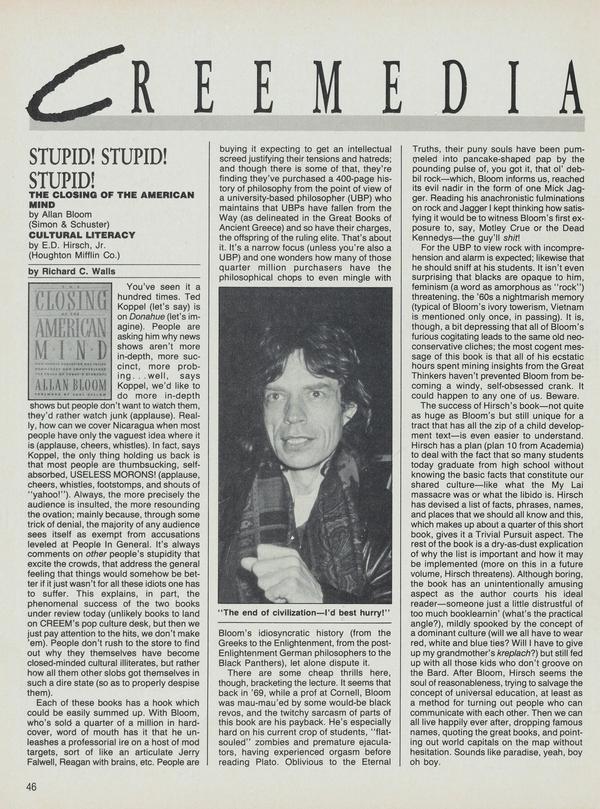You’ve seen it a hundred times. Ted Koppel (let’s say) is on Donahue (let’s imagine). People are asking him why news shows aren’t more in-depth, more succinct, more probing...well, says Koppel, we’d like to do more in-depth shows but people don’t want to watch them, they’d rather watch junk (applause).