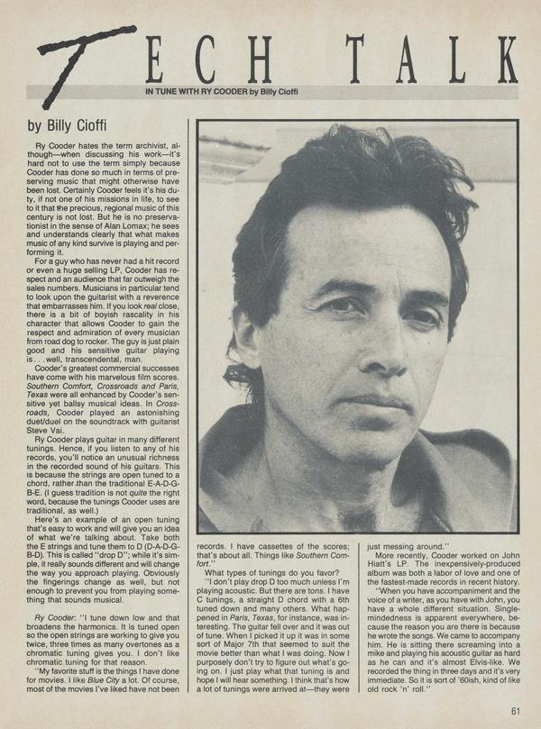 Ry Cooder hates the term archivist, although—when discussing his work—it’s hard not to use the term simply because Cooder has done so much in terms of preserving music that might otherwise have been lost. Certainly Cooder feels it’s his duty, if not one of his missions in life, to see to it that the precious, regional music of this century is not lost.