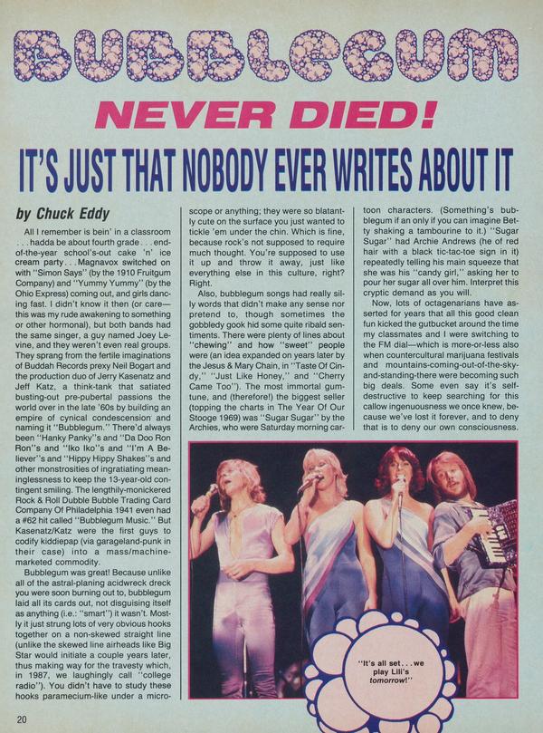 All I remember is bein’ in a classroom ...hadda be about fourth grade...endof-the-year school’s-out cake ’n’ ice cream party...Magnavox switched on with “Simon Says” (by the 1910 Fruitgum Company) and “Yummy Yummy” (by the Ohio Express) coming out, and girls dancing fast.