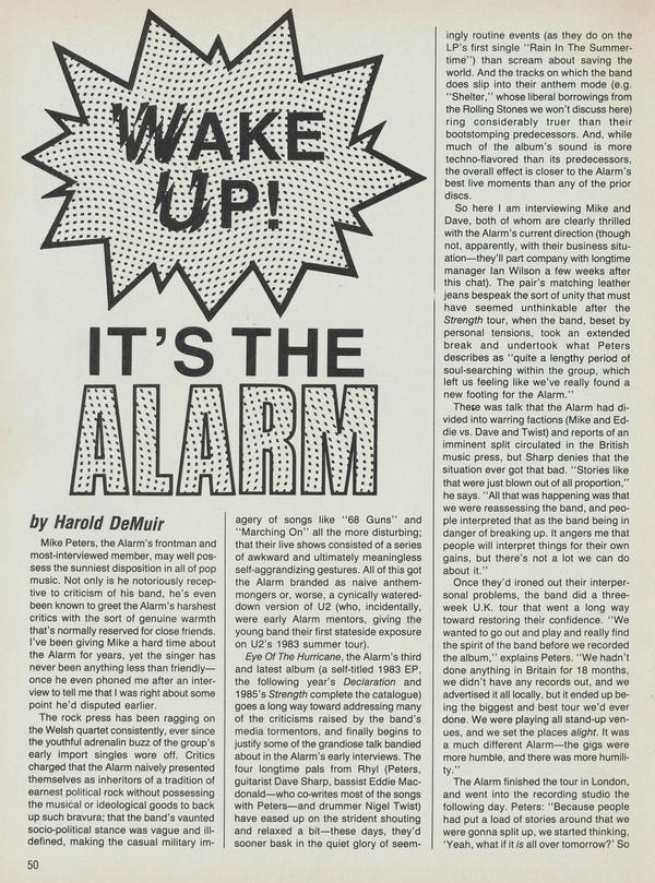 Mike Peters, the Alarm’s frontman and most-interviewed member, may well possess the sunniest disposition in all of pop music. Not only is he notoriously receptive to criticism of his band, he’s even been known to greet the Alarm’s harshest critics with the sort of genuine warmth that’s normally reserved for close friends.