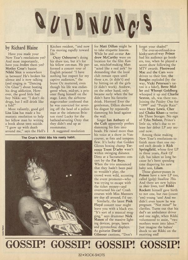 “Dear Shots In The Dark,” went the letter we opened...one of the several thousand we received that morning... “We think you’re the greatest section ever and that you rule the Universe and that it would be cool if that mean biddy, Joanne, gave you another page in ROCK-SHOTS ’cause everyone buys ROCK-SHOTS just to read your great section.”