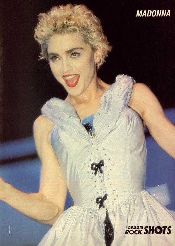 Madonna came to England and the whole place went wobbly. Famous platinum-blonde Paula Yates, wife of Sir Saint Bob Geldoff, dyed her hair brown in a huff, analysts spouted stuff about Maddy’s marriage being all down to “Repetition Compulsion” (i.e., always going gag over guys who remind you of your brothers who used to string you up on the clothesline by your knickers at a young age), residents of the London suburb where her sold-out shows were held battled to have her banned, and photographers—what with hubby Sean unavailable for fistfights this time—scuffled daily with her bodyguards.