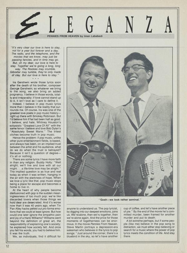 I suppose it was inevitable that the guitar would dominate popular music in the second half of this century: it’s the instrument of the common people. The early popularity of the guitar is easily explainable; it was cheap and easy to learn.