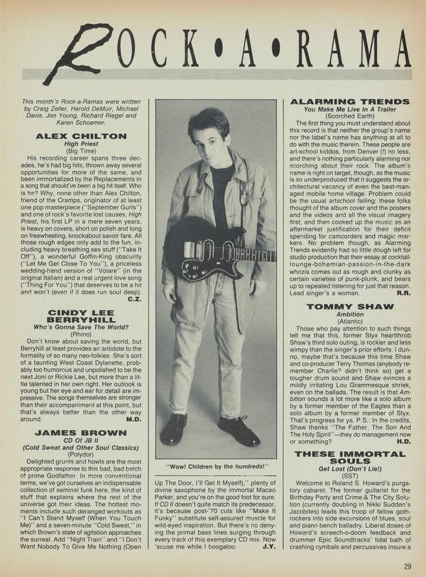 This month’s Rock-a-Ramas were written by Craig Zeller, Harold DeMuir, Michael Davis, Jon Young, Richard Riegel and Karen Schoemer.