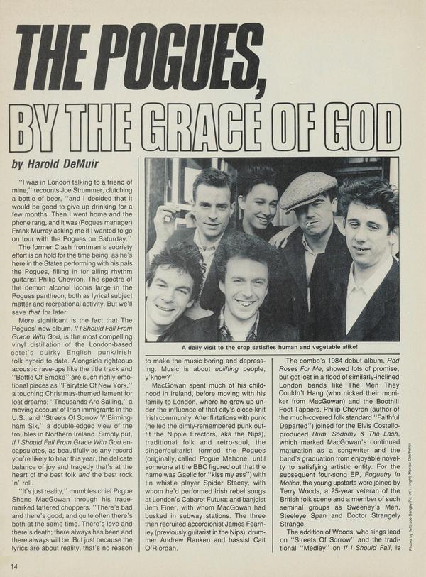 “I was in London talking to a friend of mine,” recounts Joe Strummer, clutching a bottle of beer, “and I decided that it would be good to give up drinking for a few months. Then I went home and the phone rang, and it was (Pogues manager) Frank Murray asking me if I wanted to go on tour with the Pogues on Saturday.”