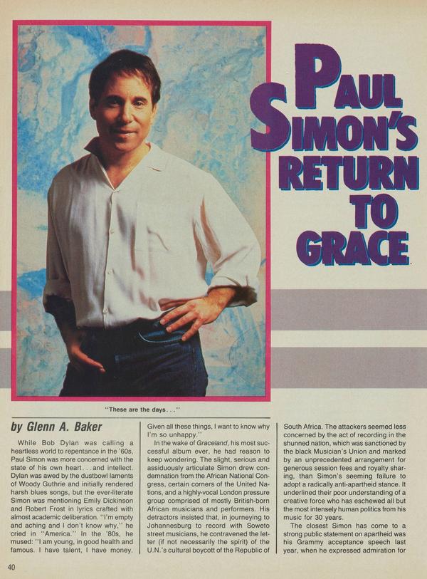 While Bob Dylan was calling a heartless world to repentance in the ’60s, Paul Simon was more concerned with the state of his own heart...and intellect. Dylan was awed by the dustbowl laments of Woody Guthrie and initially rendered harsh blues songs, but the ever-literate Simon was mentioning Emily Dickinson and Robert Frost in lyrics crafted with almost academic deliberation.