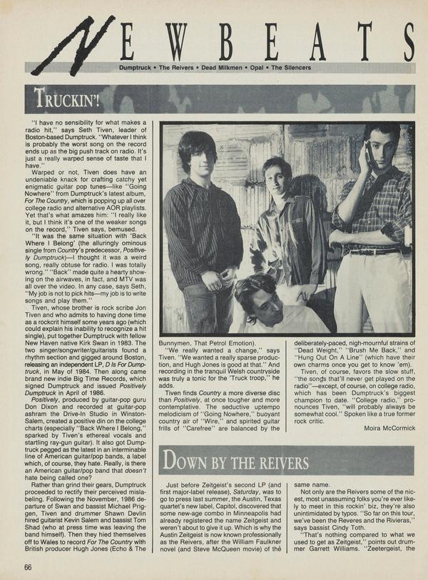 “I have no sensibility for what makes a radio hit,” says Seth Tiven, leader of Boston-based Dumptruck. “Whatever I think is probably the worst song on the record ends up as the big push track on radio. It’s just a really warped sense of taste that I have.”