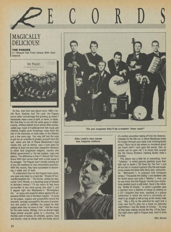 On this, their first new album since 1985’s terrific Rum, Sodomy And The Lash, the Pogues prove rather convincingly that growing up doesn’t necessarily mean a loss of spirit, or nerve, or ideals. Not that they’re not still the same gang of rabble-rousing, whiskey-stained bums whose when-worlds-collide sour mash of traditional Irish folk music and nihilistic English punk thrashings made them the talk of the barstools on both sides of the Atlantic just a few years ago.