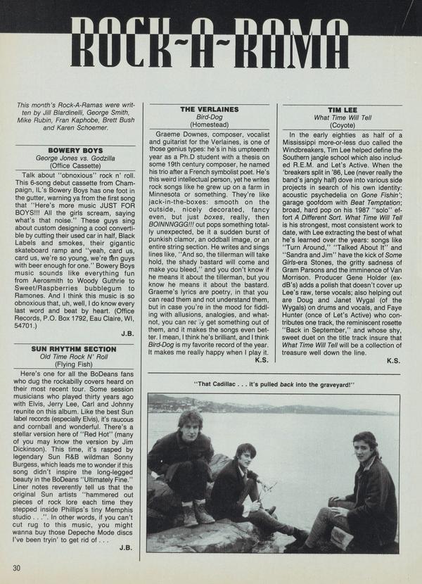 This month's Rock-A-Ramas were written by Jill Blardinelli, George Smith, Mike Rubin, Fran Kaphobe, Brett Bush and Karen Schoemer.