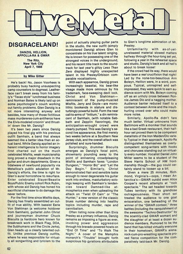 On paper, the basic concept of hardrock/heavy metal looks just dandy: everything you always liked about rock ’n’ roll, only more of it. That’s the ideal anyway. The cruel reality, as you may have noticed, is something else entirely. Because the genre’s natural audience is teenage kids (a demographic group to which you, the reader, may well belong) who supposedly don’t know any better, it’s all too easy for the music industry’s powers-that-be to channel hard-rock’s more threatening—i.e., too nasty or too serious—impulses into easilymarketable packages that do little to threaten the musical or social status quo, and, as such, are hardly recognizable as the spiritual descendents of, say, Jerry Lee Lewis and the Stooges.