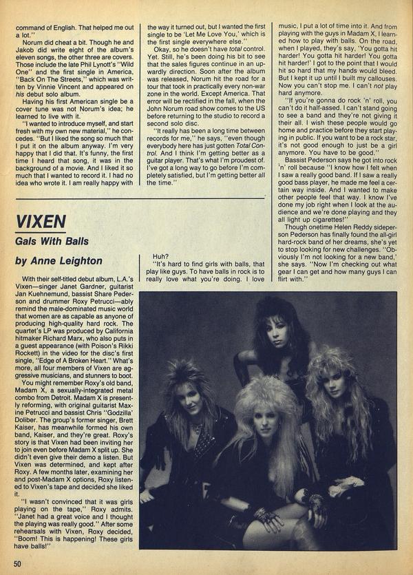 With their self-titled debut album, L.A.’s Vixen—singer Janet Gardner, guitarist Jan Kuehnemund, bassist Share Pederson and drummer Roxy Petrucci—ably remind the male-dominated music world that women are as capable as anyone of producing high-quality hard rock.