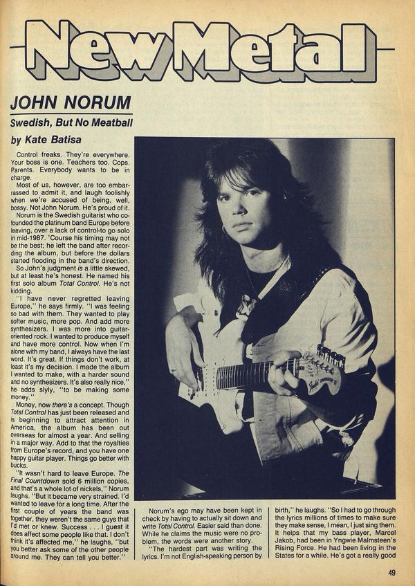 Control freaks. They’re everywhere. Your boss is one. Teachers too. Cops. Parents. Everybody wants to be in charge. Most of us, however, are too embarrassed to admit it, and laugh foolishly when we’re accused of being, well, bossy. Not John Norum.