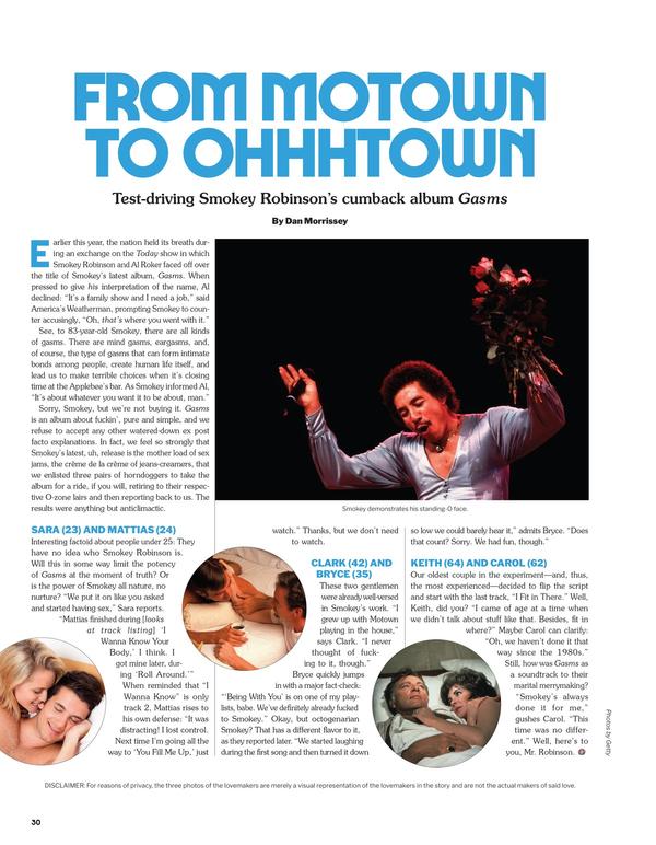 Test-driving Smokey Robinson’s cumback album Gasms.