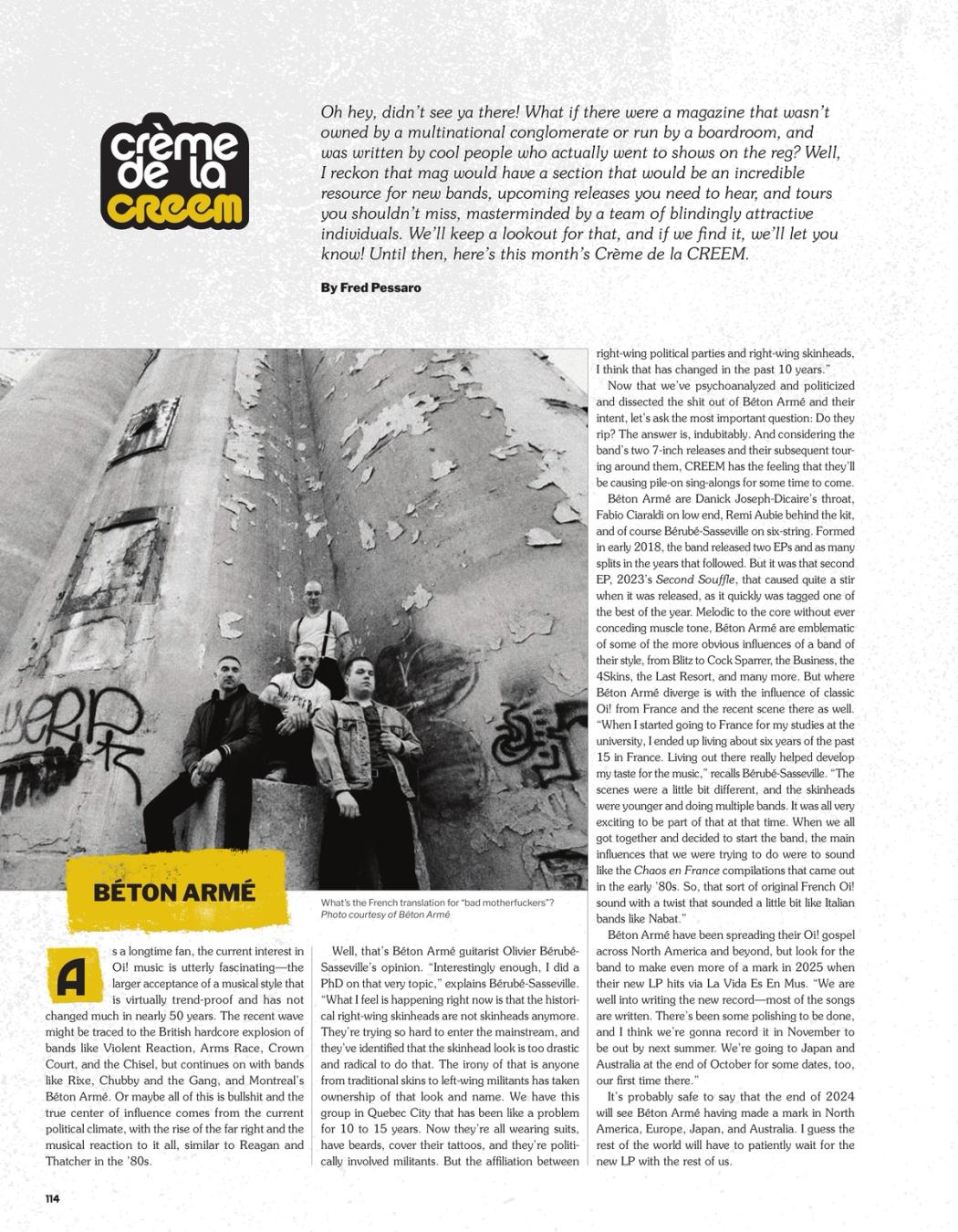 Oh hey, didn’t see ya there! What if there were a magazine that wasn’t owned by a multinational conglomerate or run by a boardroom, and was written by cool people who actually went to shows on the reg? Well, I reckon that mag would have a section that would be an incredible resource for new bands, upcoming releases you need to hear, and tours you shouldn’t miss, masterminded by a team of blindingly attractive individuals. We’ll keep a lookout for that, and if we find it, we’ll let you know! Until then, here’s this month’s Creme de la CREEM.