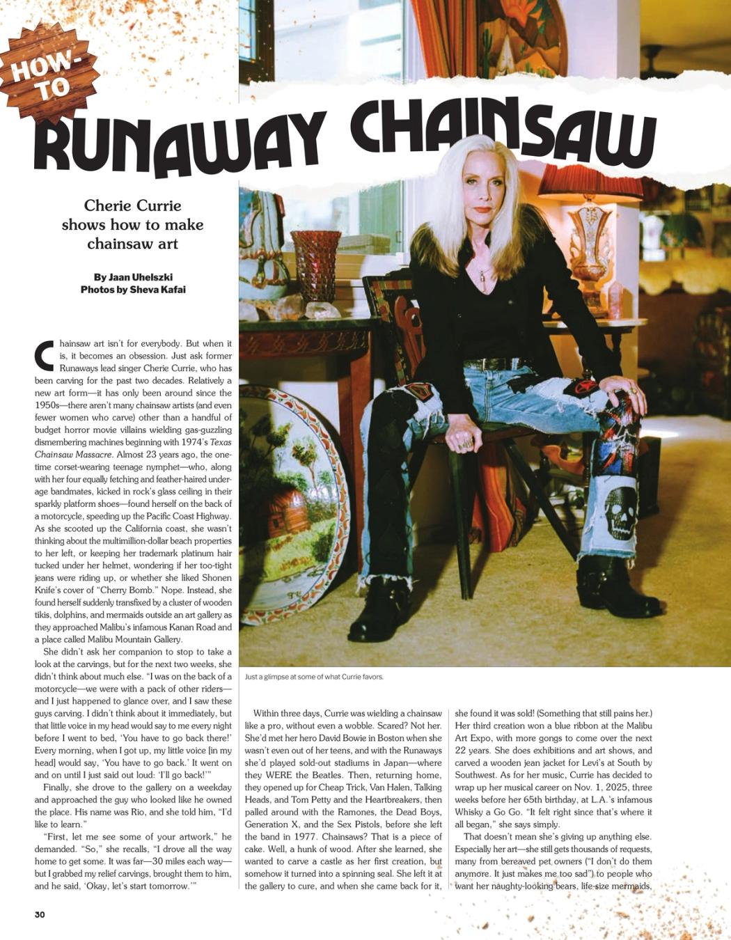 Cherie Currie shows how to make chainsaw art
