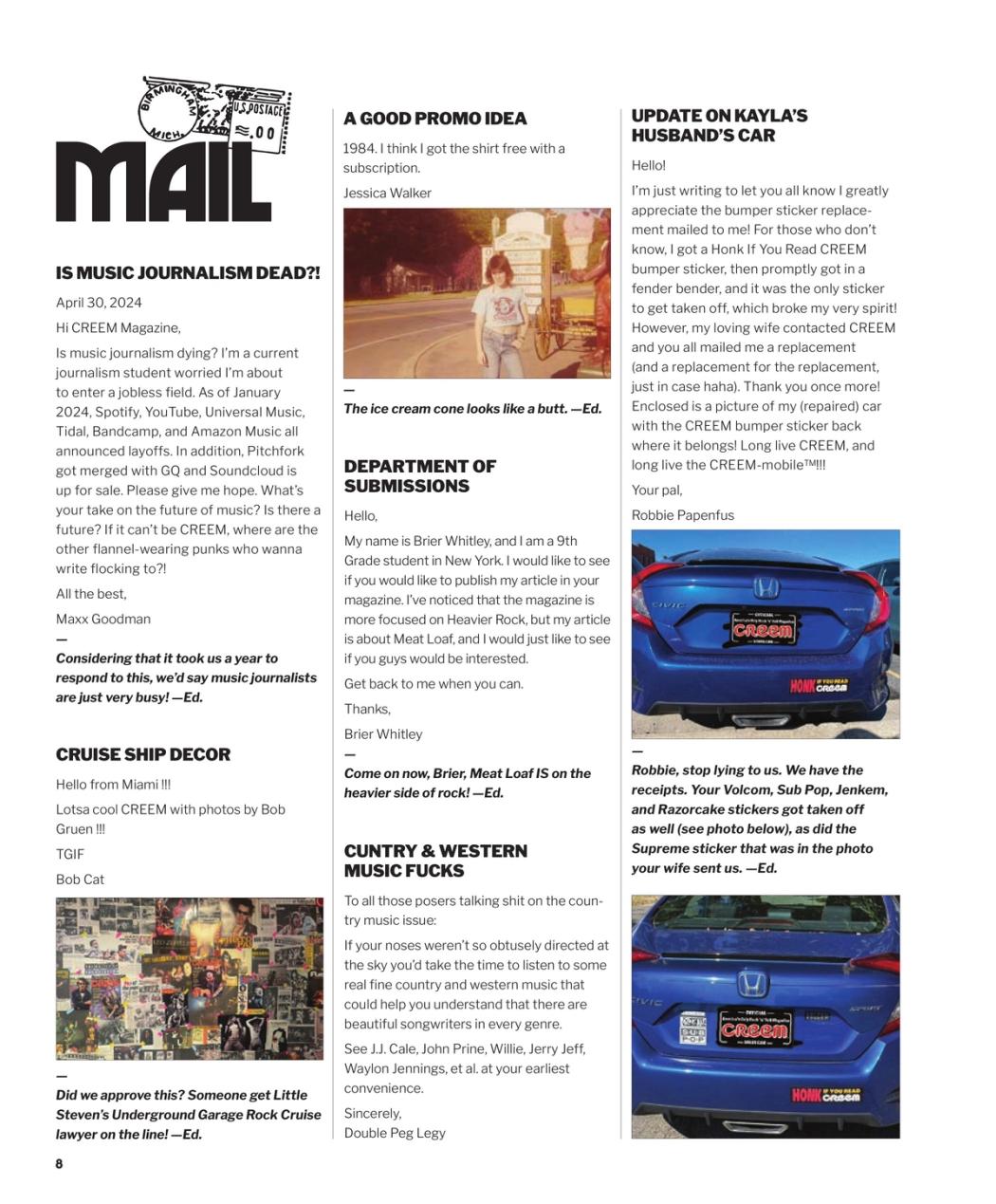 Please send letters to: Mail Department 1525 N Alvarado St #261009 Los Angeles, CA 90026 Or, if you’re lazy: mail@creem.com
