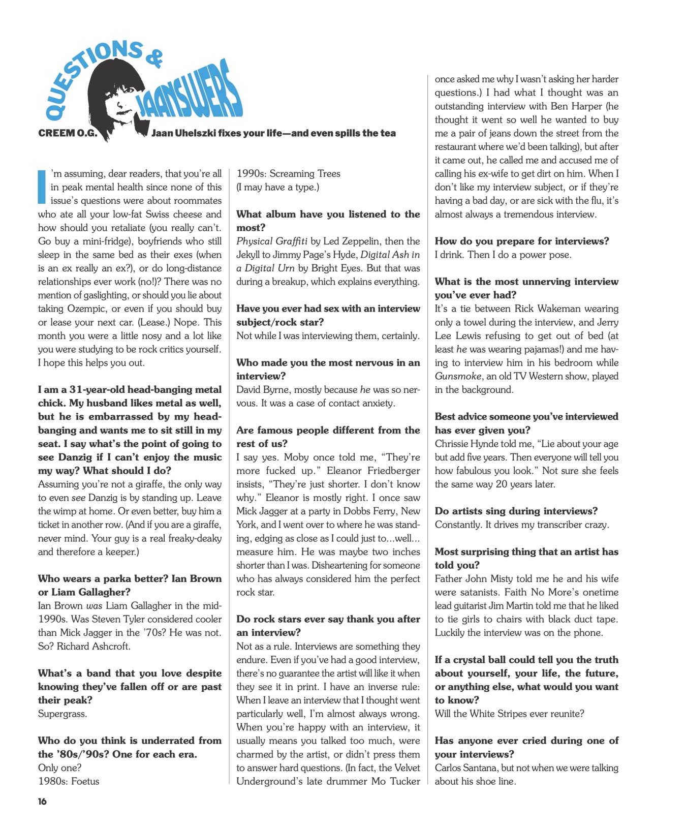 CREEM O.G. Jaan Uhelszki fixes your life-and even spills the tea.